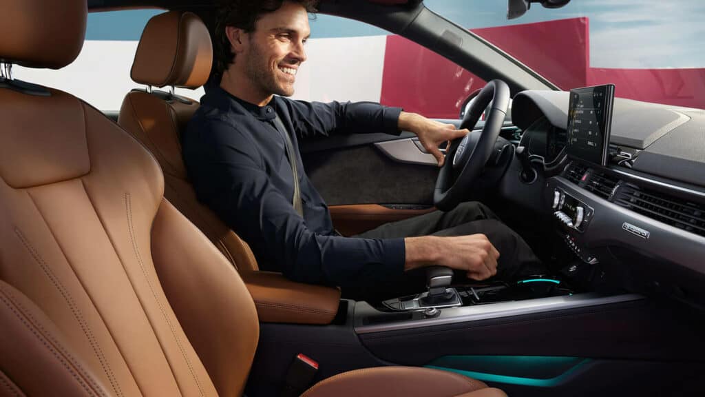 L’attenzione al dettaglio continua negli interni di pregio della Audi A4. Gli interni generosi offrono un’ampia console centrale con un funzionale vano portaoggetti e illuminazione interna di serie, creando un’atmosfera di raffinatezza.