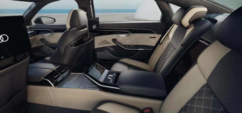 La nuova Audi A8 L si distingue per l’ampio e accogliente abitacolo, dove i sedili posteriori offrono un comfort di seduta senza precedenti.