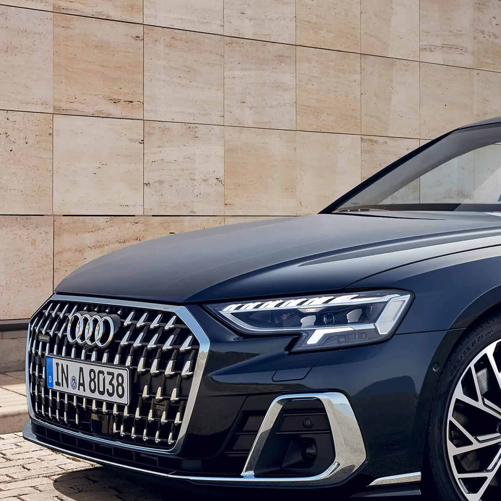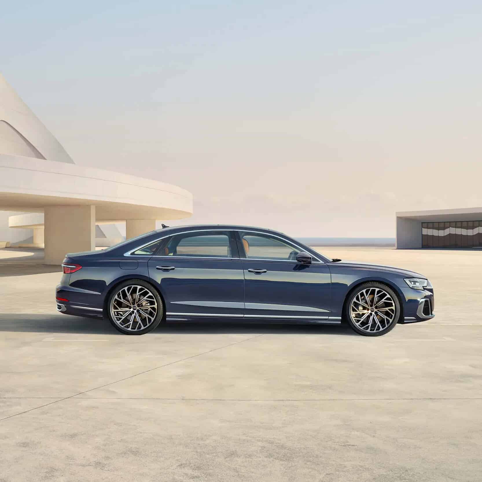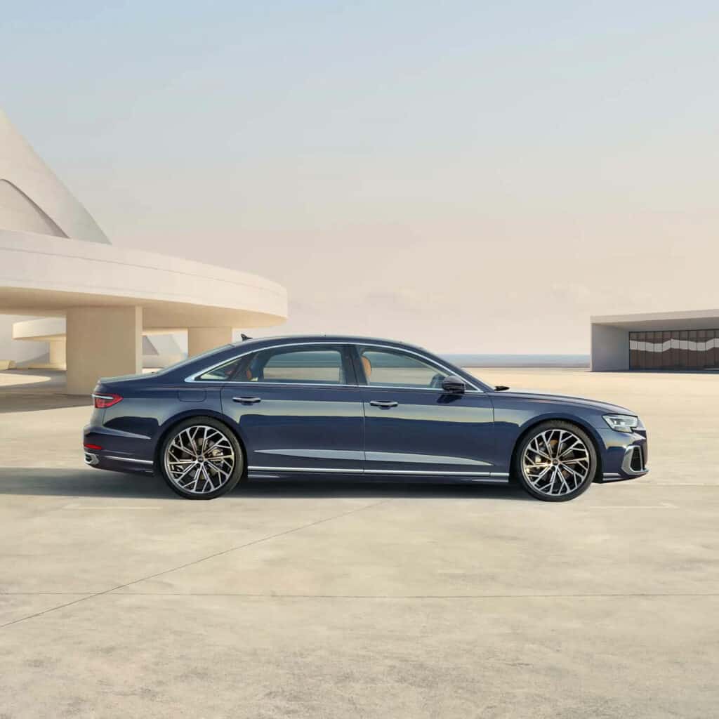 La nuova Audi A8 L in Blu Firmamento metallizzato incarna perfettamente il concetto di spaziosità, sia all’interno, dove lo spazio dedicato alla testa e alle gambe dei passeggeri è ancora più ampio, sia all’esterno, dove il passo più lungo e le portiere più grandi mettono in risalto un design unico nel suo genere.
