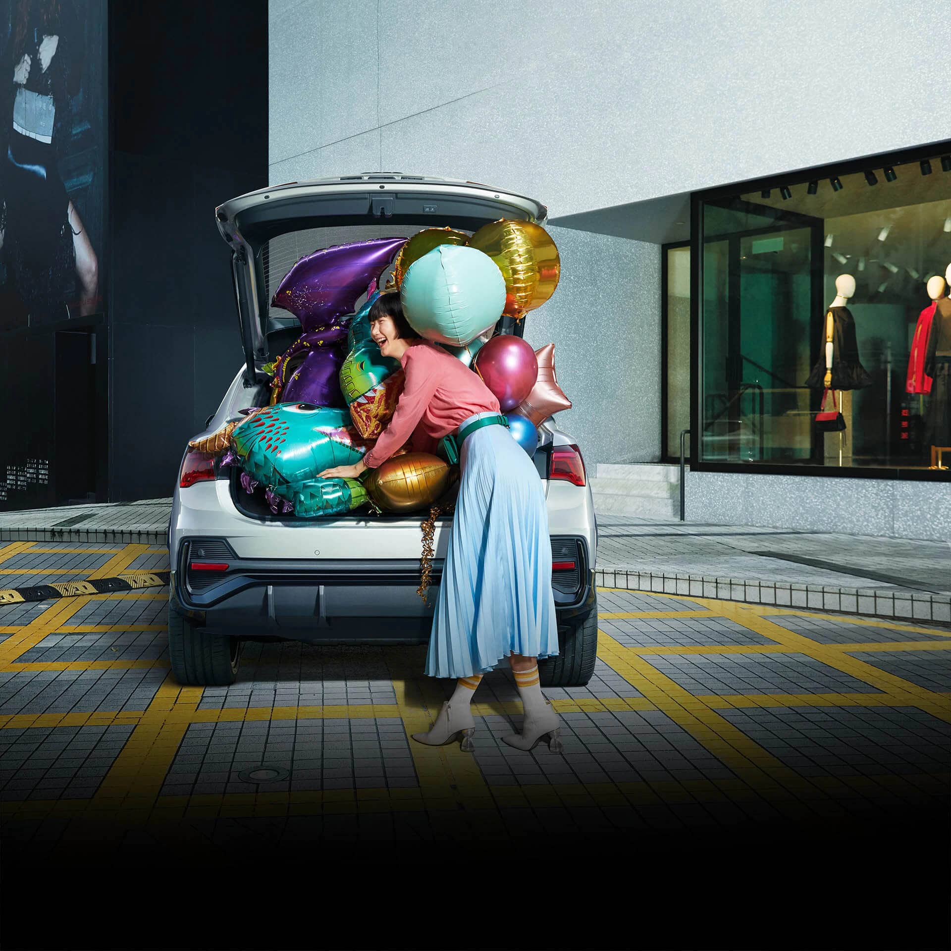 La Q3 Sportback offre un nuovo concetto di spazio per gli interni. La fila di sedili posteriori può ospitare comodamente tre persone ed è dotata di un sistema di scorrimento longitudinale di 13 centimetri, mentre gli schienali ripiegabili in tre sezioni possono essere inclinati in sette posizioni. Il volume del bagagliaio varia da 530 a un massimo di 1.400 litri. Il portellone posteriore elettrico è di serie e, in combinazione con la chiave comfort, può essere aperto comodamente con un movimento del piede, per la massima praticità.