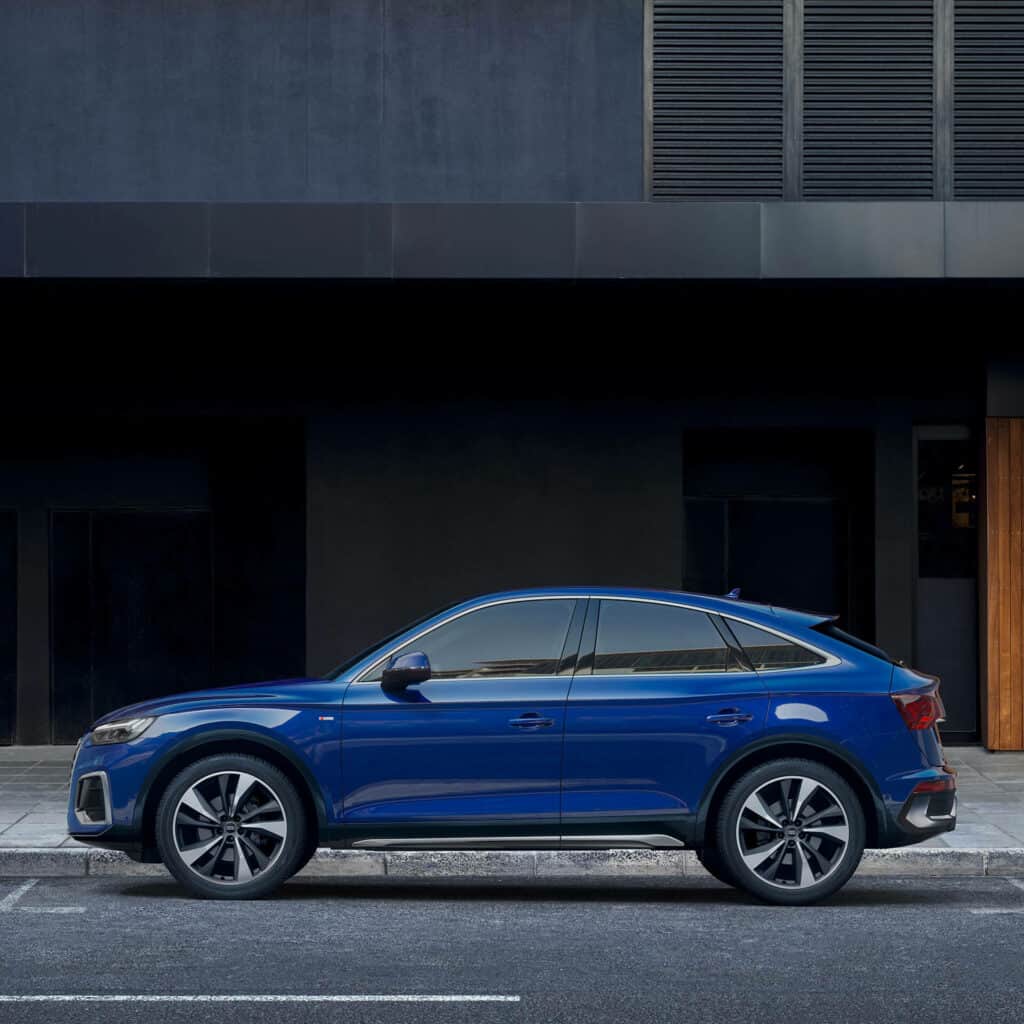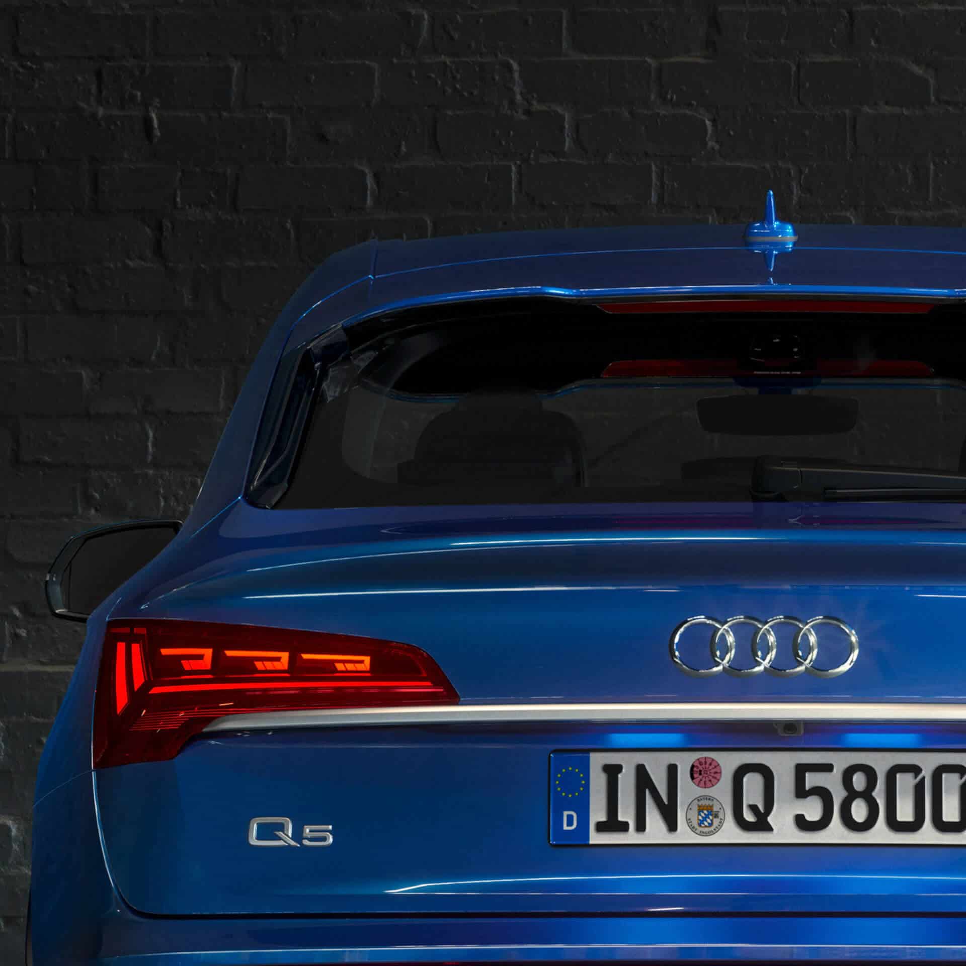Scopri l’audacia della Nuova Audi Q5 Sportback a Rimini e San Marino. Il design di questa vettura conferisce uno stile sportivo e carismatico. Il posteriore inclinato, ampio e uniforme, ricorda quello di una coupé, esprimendo un aspetto aerodinamico. Il diffusore con finiture orizzontali, la linea cromata lungo tutta l’ampiezza del veicolo e lo spoiler sportivo al tetto conferiscono ulteriore dinamicità. L’allestimento S line, disponibile come optional, aggiunge accenti e dettagli ancora più grintosi.