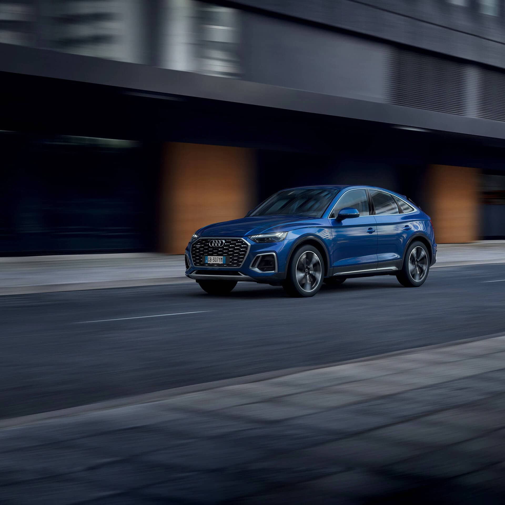 Audi Q5 Sportback offre una guida agile e un’accelerazione dinamica. La trazione quattro con tecnologia adattiva monitora costantemente le condizioni di guida e distribuisce la forza motrice tra le ruote secondo le necessità. Audi drive select permette di regolare le caratteristiche del veicolo in base alla modalità di guida scelta: prestazioni elevate, maggior comfort o una combinazione personalizzata di entrambe.