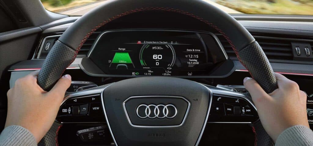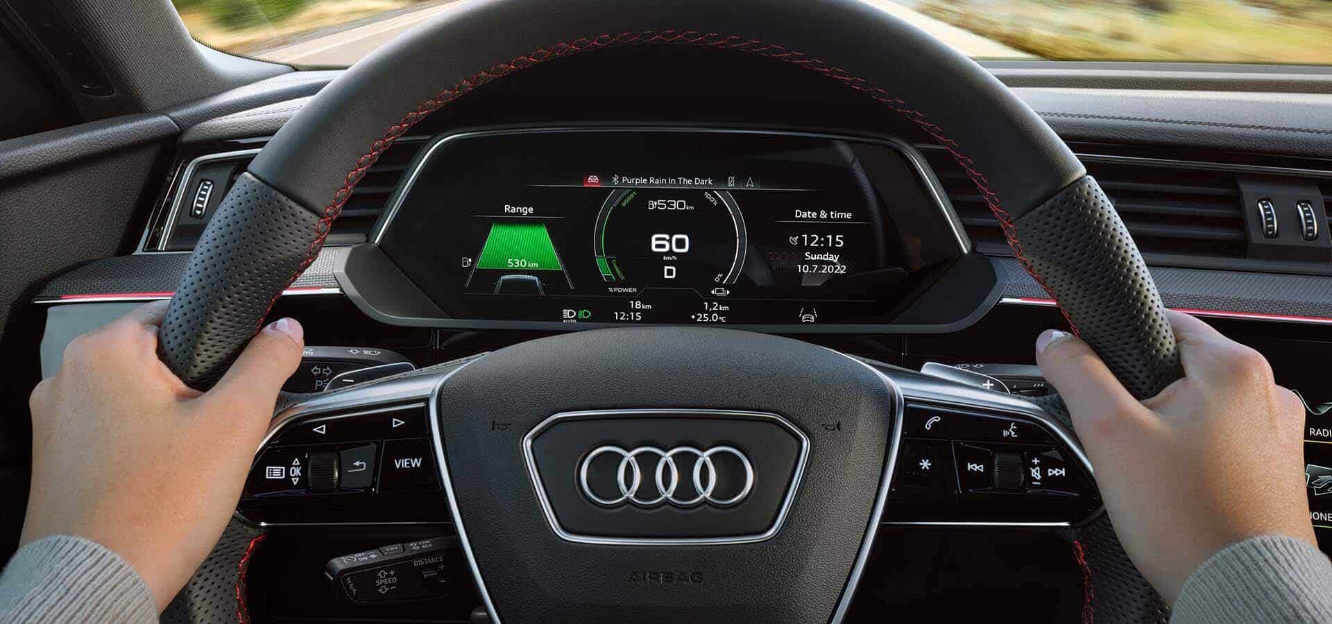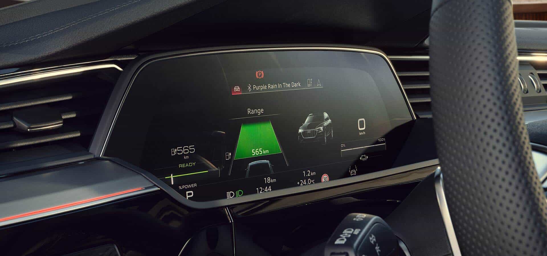 La batteria ad alto voltaggio con una capacità fino a 106 kWh (netti) assicura un’autonomia massima fino a 594 chilometri. Quando lo stato di carica della batteria è basso, è possibile sfruttare il potenziale di autonomia aggiuntivo, ad esempio, attivando la modalità Range nell’MMI.