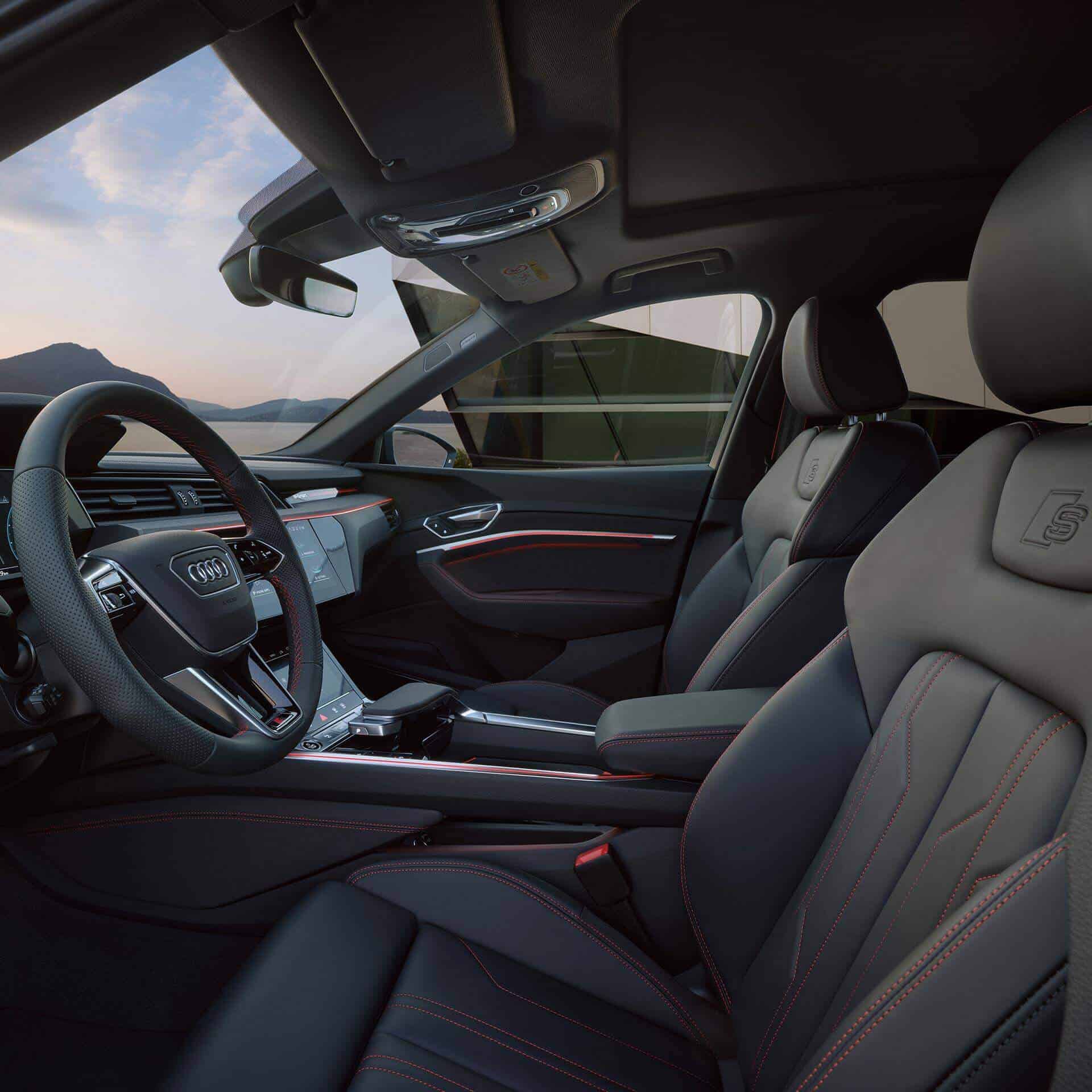 La scelta attenta dei materiali, le finiture di lusso e le funzioni digitali avanzate trasformano ogni viaggio a bordo di Audi Q8 e-tron in un’esperienza premium. Le cuciture colorate Audi Sport GmbH in Rosso e i sedili anteriori sportivi in pelle Valcona con impuntura S sono solo alcuni degli esclusivi dettagli.