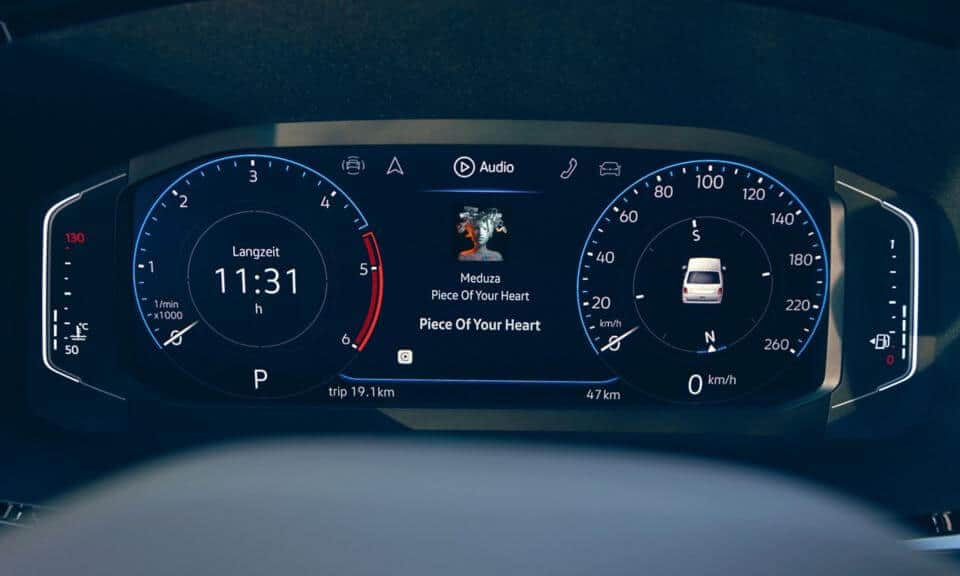 Scopri il futuro della navigazione con la Volkswagen California 6.1. La combinazione del Digital Cockpit e del dispositivo di navigazione Discover Pro da 23,4 cm (9,2 pollici) offre soluzioni di navigazione avanzate e intuitive. Visualizza la mappa di navigazione tra il contagiri e il tachigrafo per una guida sempre informata e precisa.