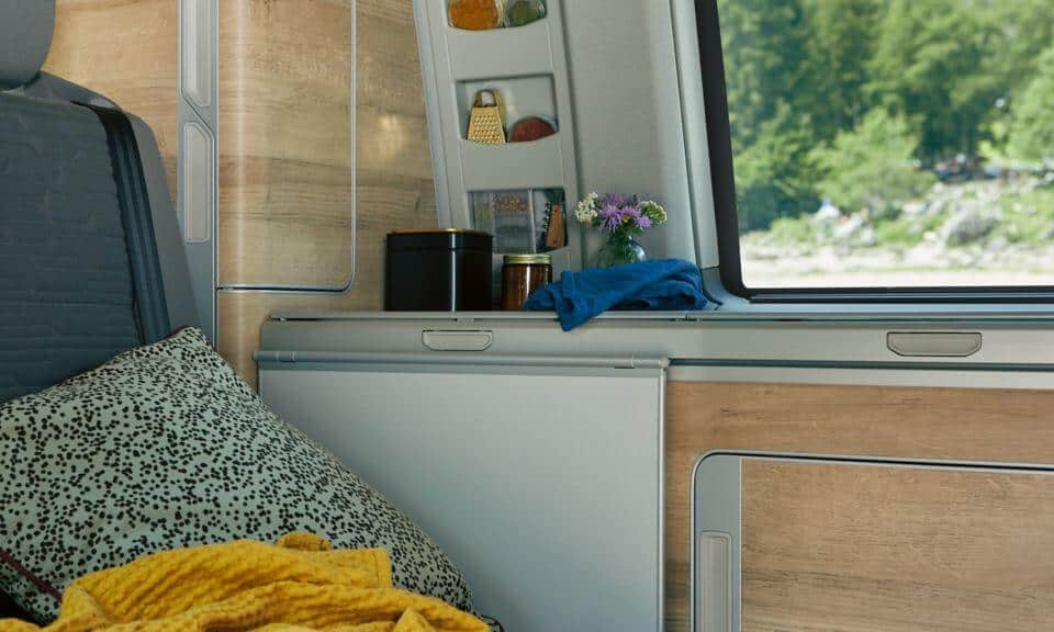 Inizia la giornata con una vista spettacolare all’aperto. Ribalta l’intera finestra anteriore della Volkswagen California 6.1 per goderti l’alba e la natura direttamente dal tuo veicolo.