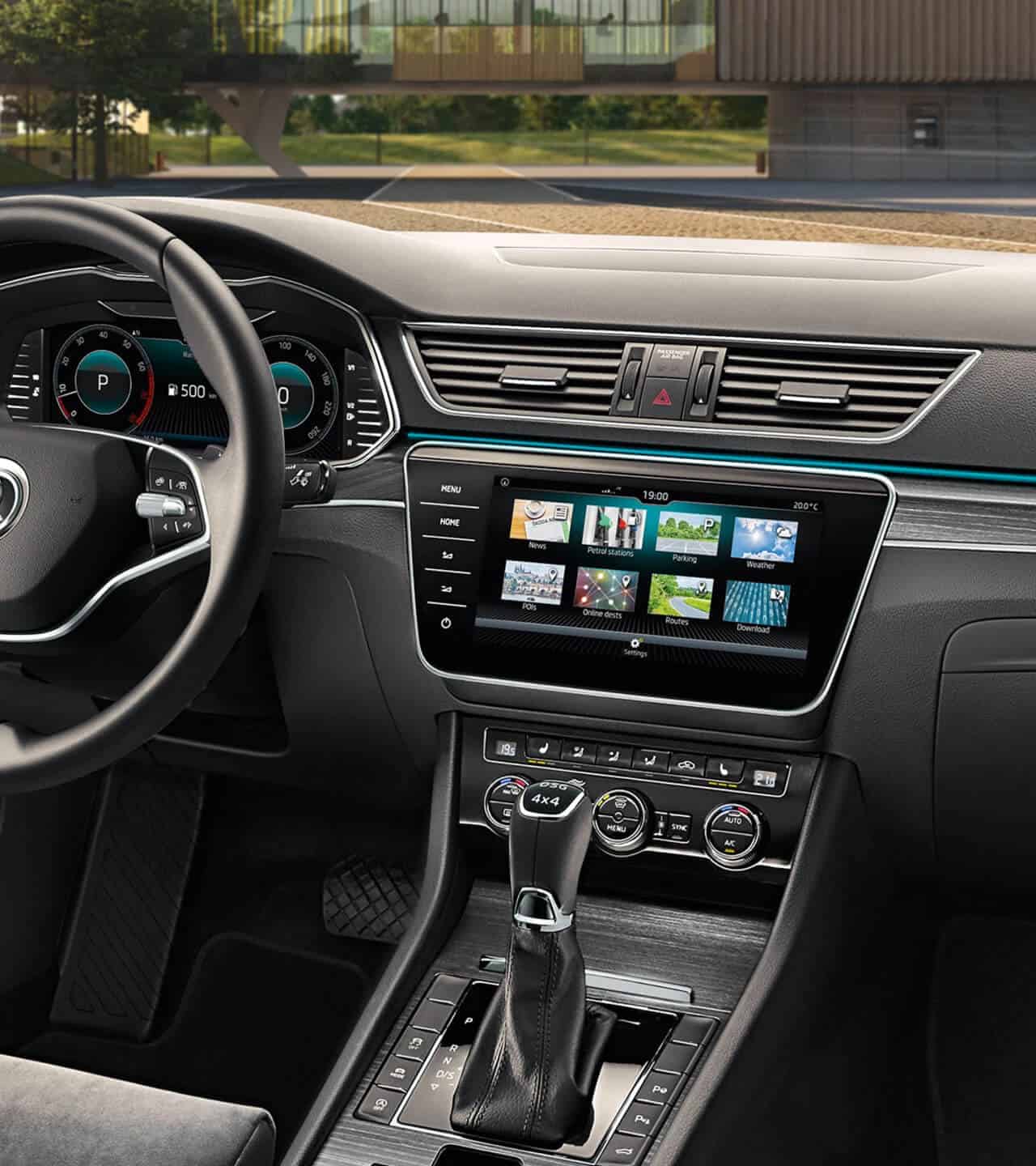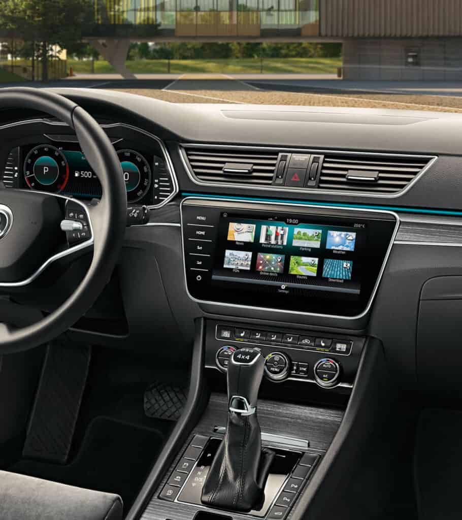 La Superb offre interni di lusso con dettagli raffinati. La plancia e le maniglie delle porte sono arricchite da nuove finiture cromate, mentre la console centrale è impreziosita da inserti decorativi. Le 10 diverse opzioni di illuminazione ambientale LED, regolabili tramite il Sistema di Infotainment, creano un’atmosfera piacevole durante il viaggio.