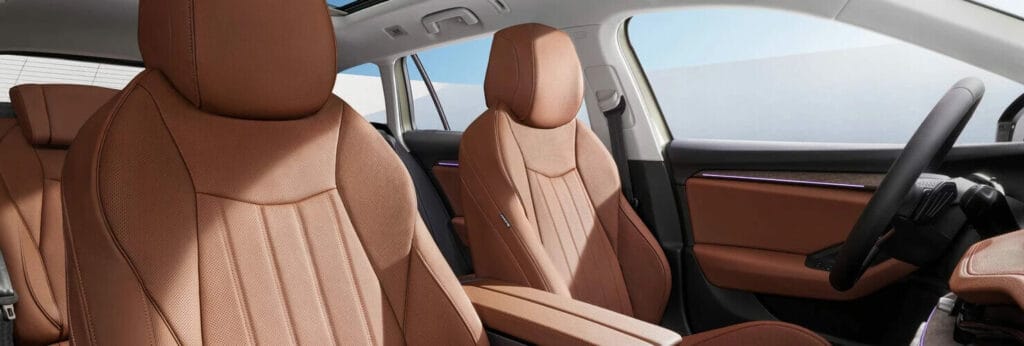 Con la possibilità di scegliere il modello L&K Suite in nero e cognac, i materiali sostenibili dimostrano l’impegno di Škoda per la sostenibilità, perfetto per chi cerca raffinatezza e consapevolezza ambientale a Rimini e San Marino.