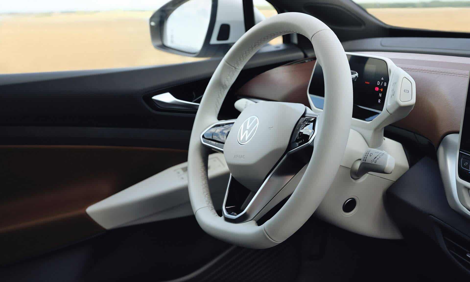I dettagli di design si fondono in armonia, con cerchi in lega leggera fino a 21″ dalle forme fluide, mancorrenti sul tetto per praticità di trasporto, e gruppi ottici posteriori a LED 3D con indicatori di direzione dinamici. Un vero highlight è la linea di luce, disponibile su richiesta, che abbraccia il logo Volkswagen, conferendo all’ID.4 un carattere inconfondibile.