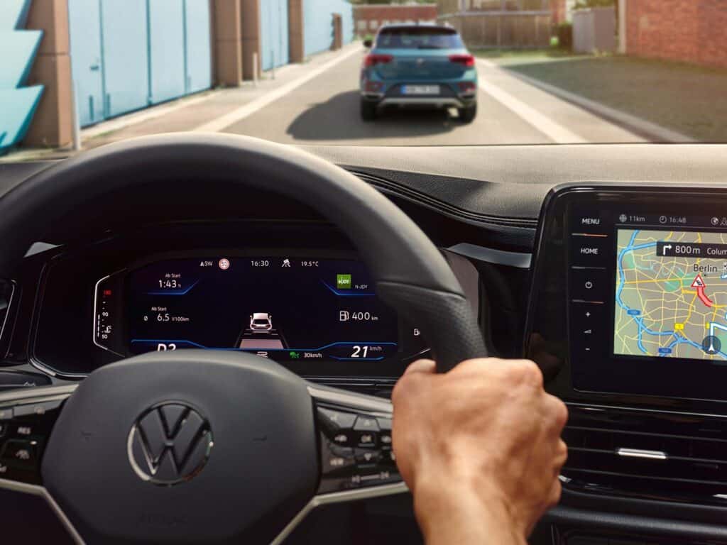 Il sistema di climatizzazione Air Care Climatronic garantisce un ambiente piacevole all’interno del tuo Nuovo T‑Roc, con comandi digitalizzati e accessibili tramite touchscreen. Il Digital Cockpit di serie mostra informazioni cruciali su un display a colori da 8”, mentre l’opzione Digital Cockpit Pro ti offre ulteriori possibilità di configurazione su uno schermo ad alta risoluzione da 10,25”.
