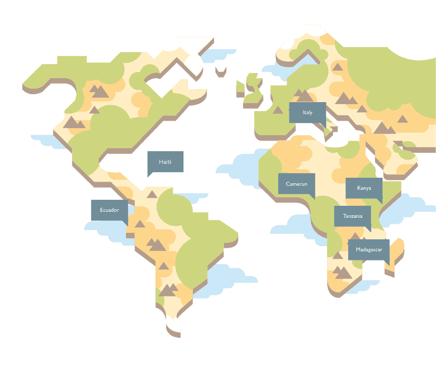 Abbiamo scelto di piantare alberi in Camerun, in Colombia, in Ecuador, In Ghana, in Kenya, in Malawi, in Nepal e altri alberi in Tanzania .
